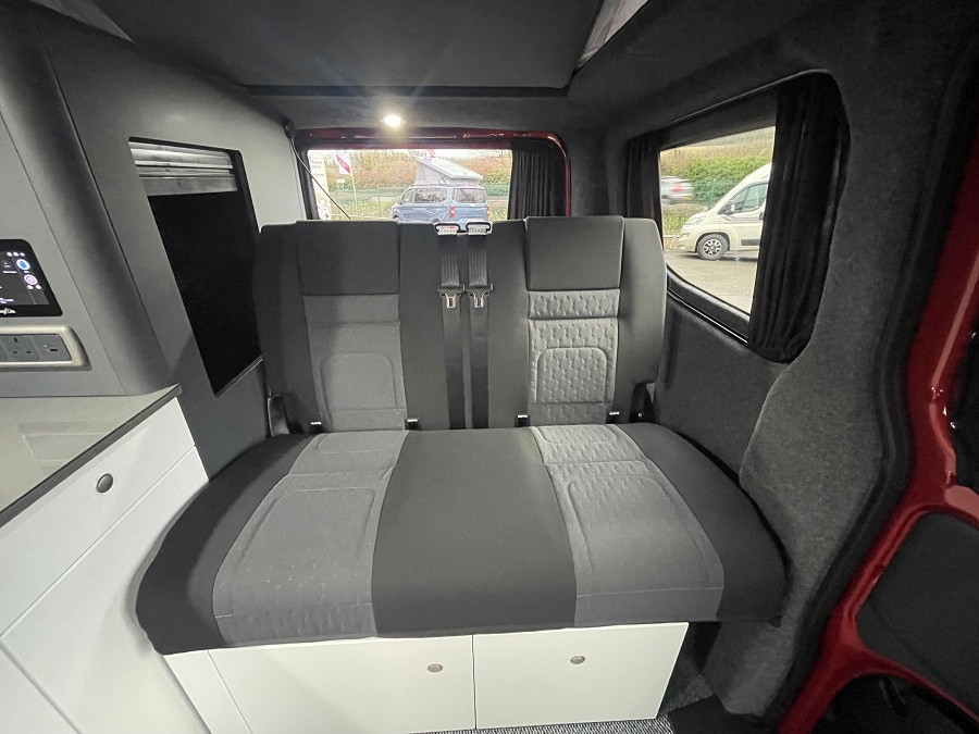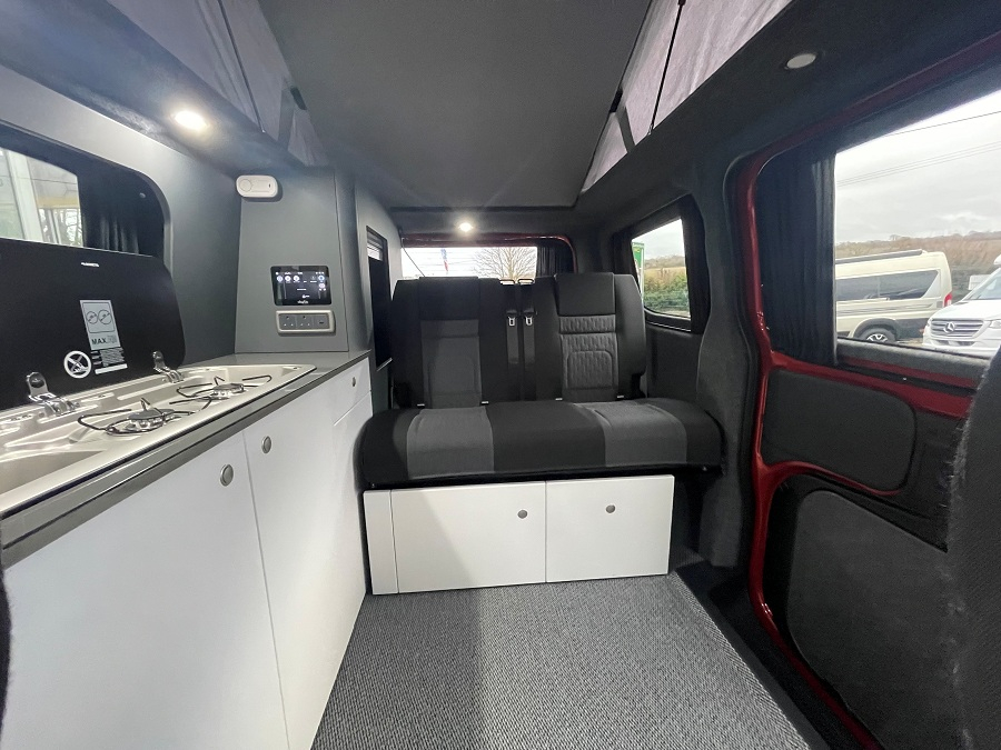 Extras include: Alloy wheels, Cab air conditioning, Cruise control, External Shower point, Hot water system with 3L hot water tank , and 35L freshwater tank, Portable toilet with discreet custom storage, Propex gas heating, Refillable gas, Reversing camera and Reversing Sensors.