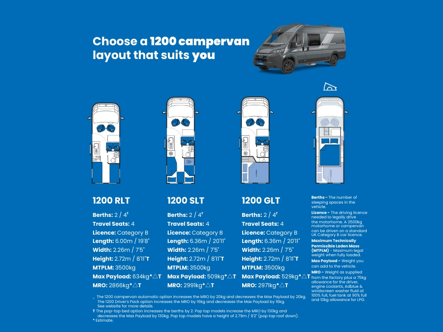 The Ace 1200 campervan range is designed for everyday adventures that balances comfort and practicality with features you’ll actually use. With space to sleep up to 4, it’s ideal for couples, families or first-time campervan owners, the 1200 gives you confidence, comfort and the freedom to travel your way.