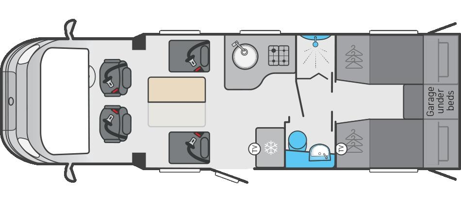 Special features: Alloy wheels, Apple CarPlay, Cab air conditioning, Cruise control, Dedicated USB-C points including under-locker USB-C points, Eco stop/start system, External BBQ point, External shower point, Panoramic Sunroof, Reversing camera, Solar panel and Truma CombiNeo.