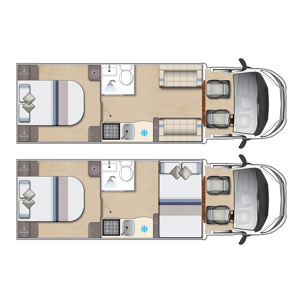 Extra's include: Alloy wheels, Awning, Bike Rack, Cab air conditioning, Cruise control, External BBQ point, Microwave, Refillable Gas, Reversing camera, Solar Panel and TV Aerial.