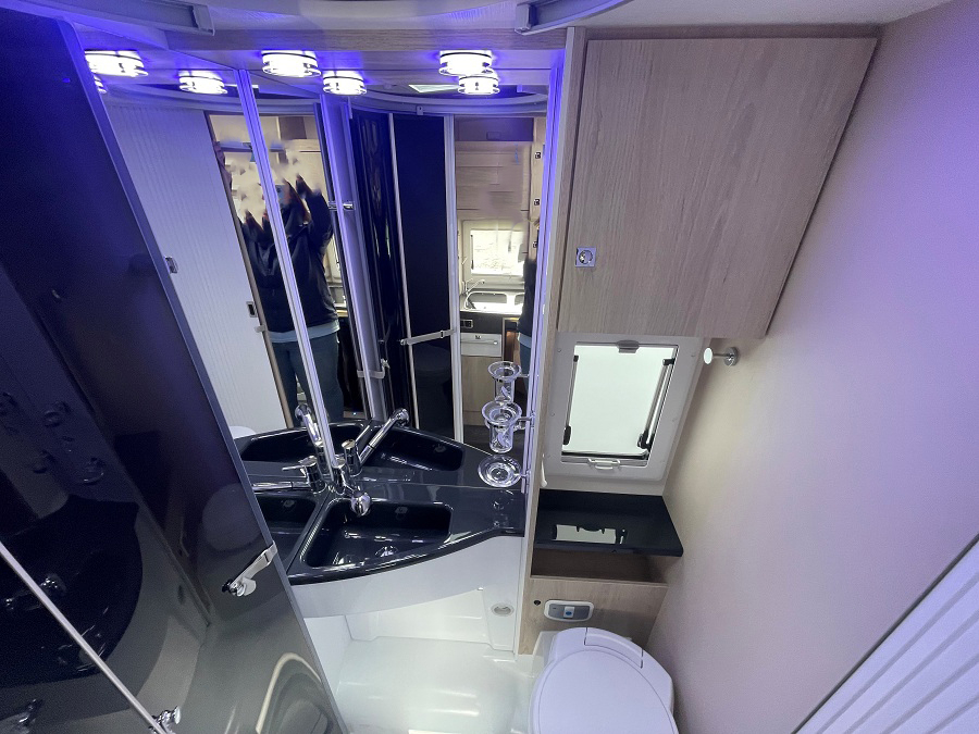 Extras include: Alloy wheels, Awning, Bike rack, Cab air conditioning, Cruise control, External shower point, Refillable gas, Reversing camera, Reversing sensors, Solar Panel and Webasto heating.