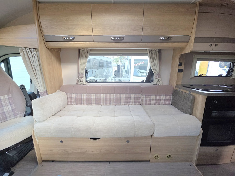 This Elddis Porthos 175 is a special edition 2-berth, 2-travel seat motorhome based on the 175 layout, featuring a luxurious gold cab